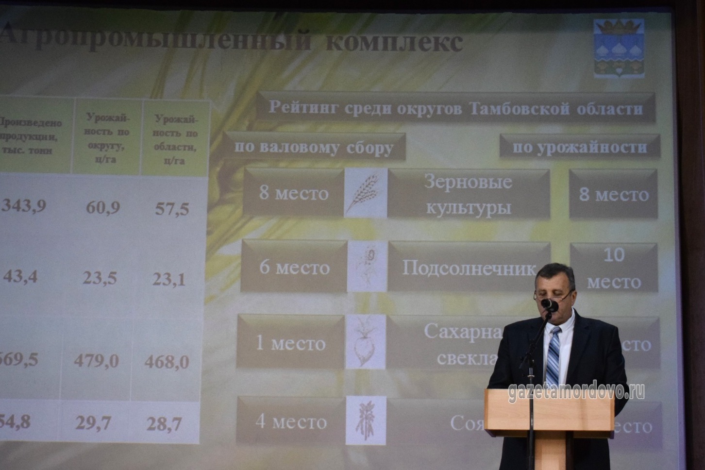 Подводя итоги года заместитель главы администрации округа Сергей Ковешников отметил, что сельское хозяйство всегда было и остается важнейшей отраслью экономики Мордовского округа и занимает лидирующие позиции в Тамбовской области по производству сельскохозяйственной продукции, входя в десятку лучших.