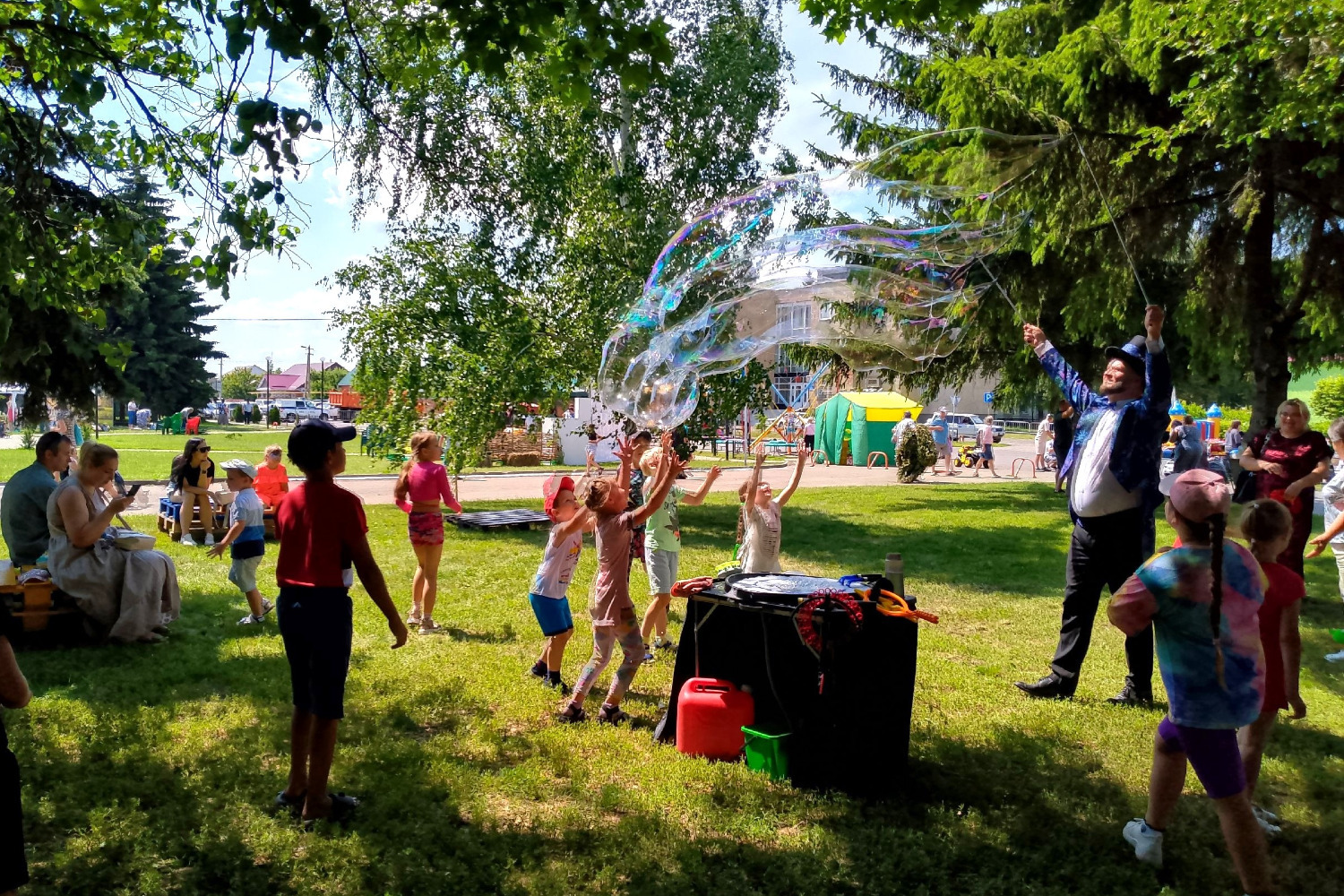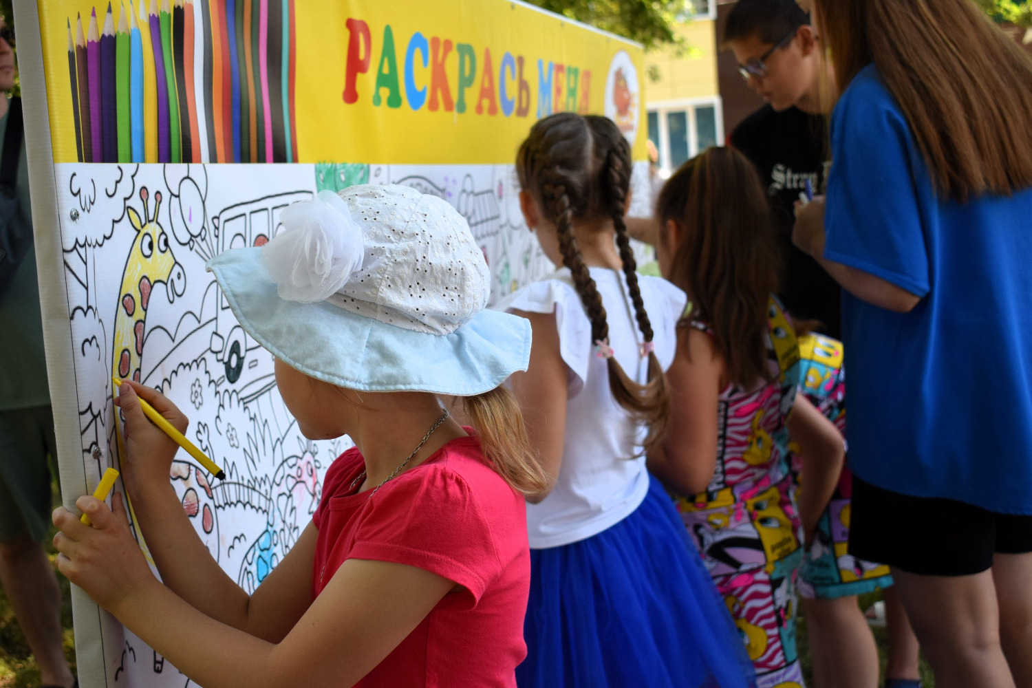 Для детей здесь организовали аттракционы, мастер-классы, аквагрим, фотозоны, шоу-мыльных пузырей, караоке-бар.
