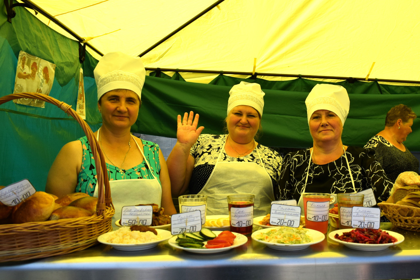 В «Крестьянском дворе» песни и частушки под заливистую гармонь создавали праздничное настроение. Здесь народ угощали кашей гречневой с мясом и сливной кашей из пшена и картошки, а также разнообразной ароматной выпечкой.