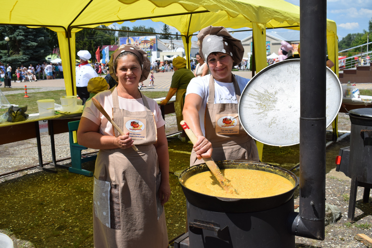 Пока шёл праздник, кашевары готовили в трёх 25-литровых котлах три вида каши: перловую с мясом, рисовую с мясом и чечевичную с луком, морковью и чесноком. На полевой кухне повара из воинской части посёлка Знаменка в это время варили настоящую солдатскую гречневую кашу и уху.