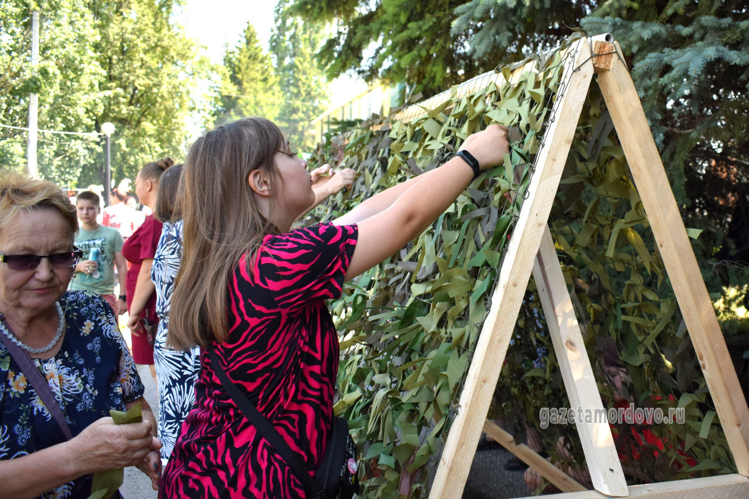 А мордовские волонтёры показали мастер-класс по плетению маскировочных сетей.