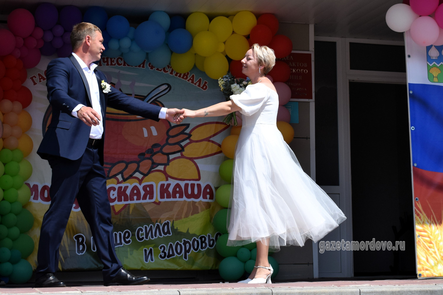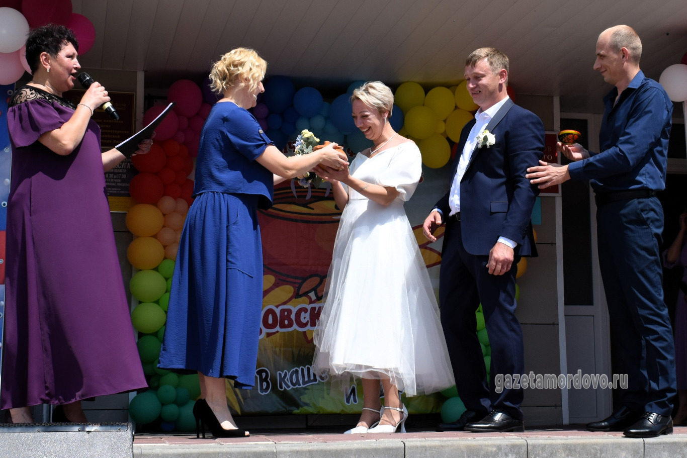 Символично, что в Год семьи во время фестиваля в отделе ЗАГС администрации Мордовского округа родилась новая семья Глебовых. Прямо с церемонии бракосочетания из ЗАГСа счастливых молодожёнов Анатолия и Любовь Глебовых пригласили на праздник. В память о фестивале молодой хозяйке вручили горшочек, чтобы варить семье вкусную кашу, а хозяину — ложку, чтобы эту кашу есть.