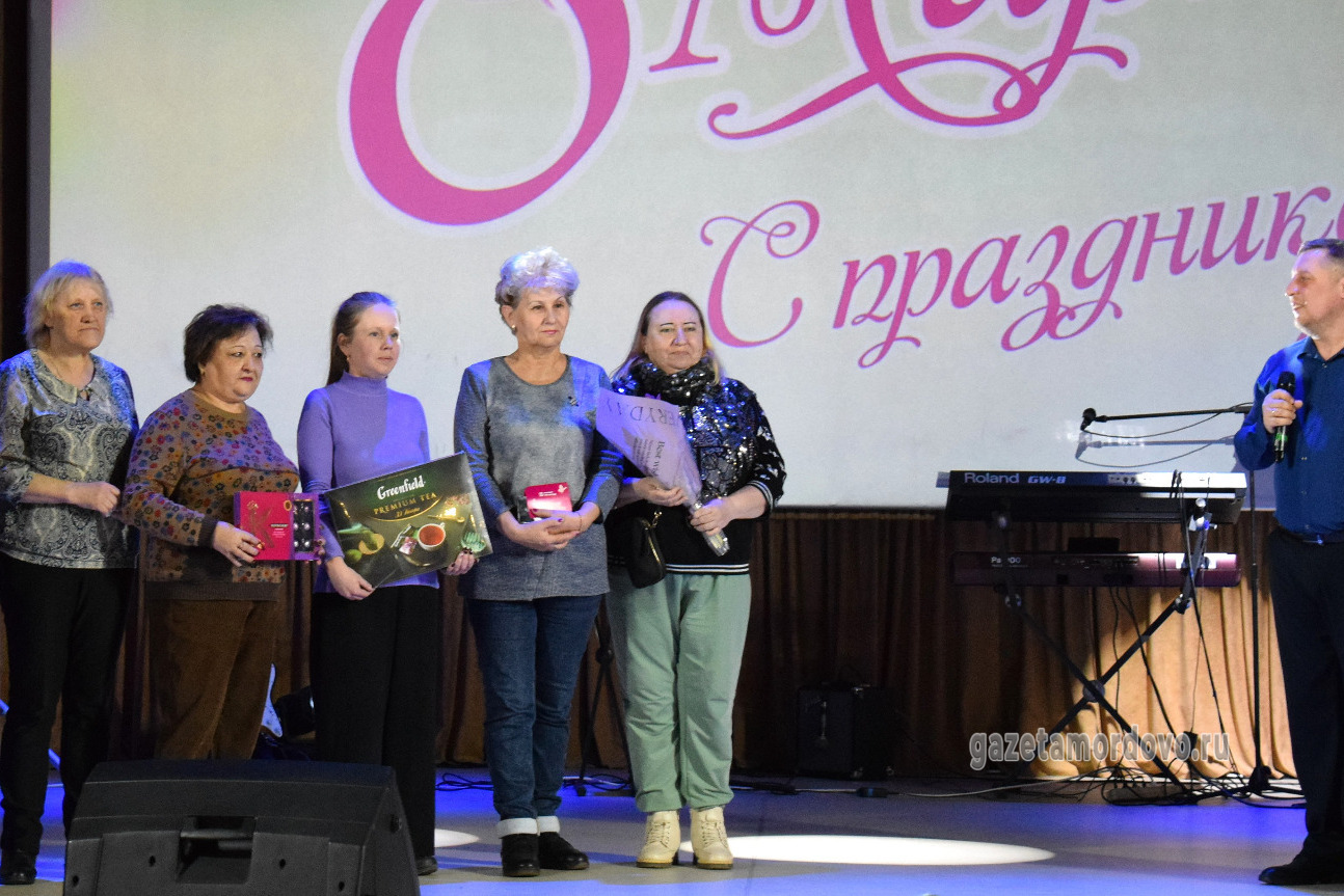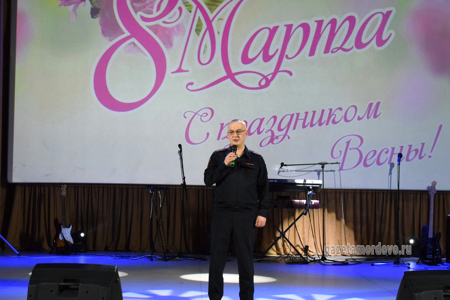 С наступающим Международным женским днём со сцены представительниц прекрасной половины человечества поздравили глава Мордовского муниципального округа Сергей Манн, депутат Тамбовской областной Думы Виктор Тарабрин, начальник МОМВД России «Мордовский» подполковник полиции Алексей Терентьев, военный комиссар Мордовского и Токарёвского муниципальных округов Олег Митин, настоятель Михаило-Архангельского храма священник Максим Мошкин, заместитель главного врача Мордовской ЦРБ Сергей Попов, директор Оборонинской средней школы Алексей Анохин.