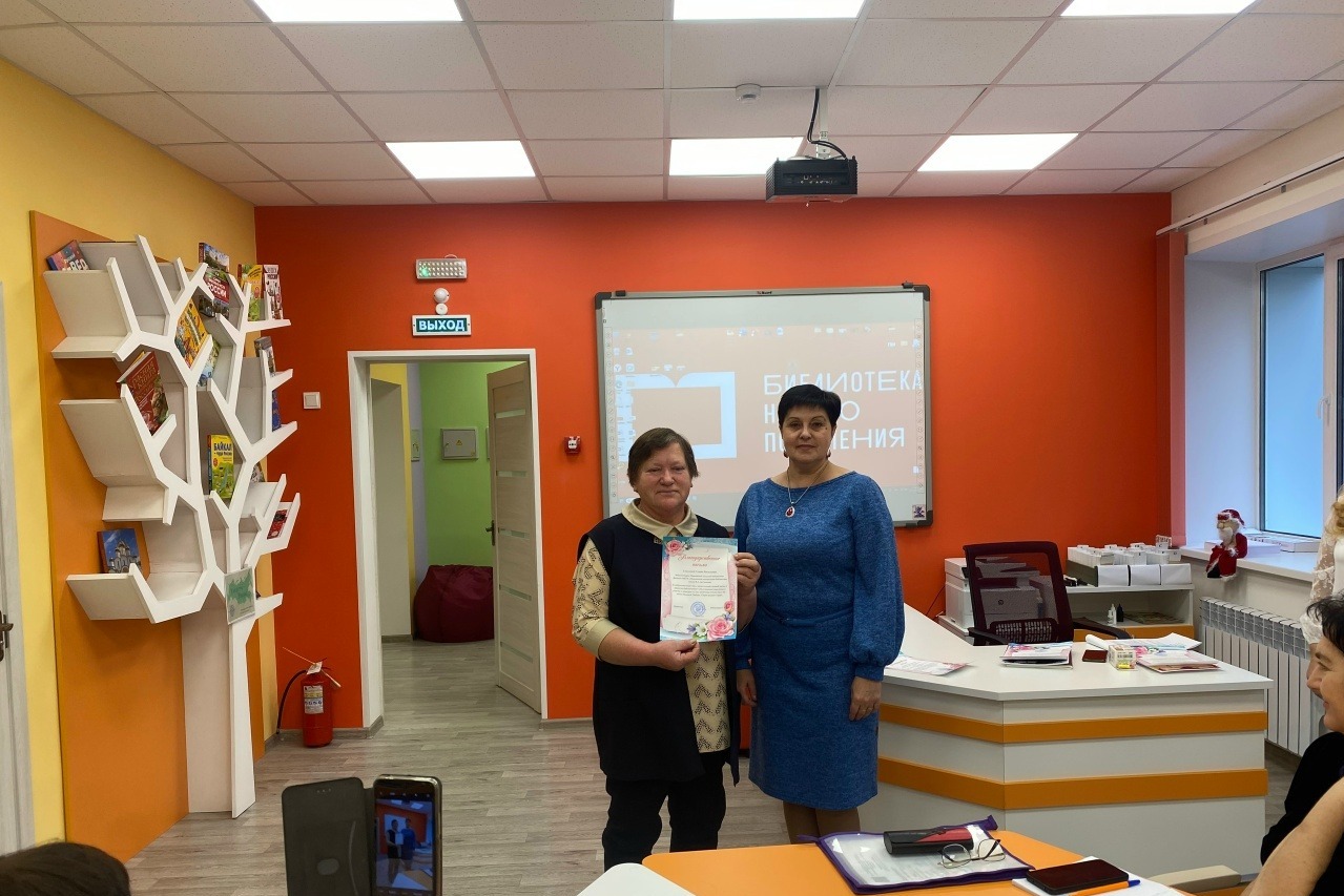 За активную и плодотворную работу в рамках проекта «Пушкинская карта» Ольга Рябчунова вручила благодарственные письма заведующей отделом обслуживания Вере Проскуриной и библиотекарю отдела Елене Яковлевой.