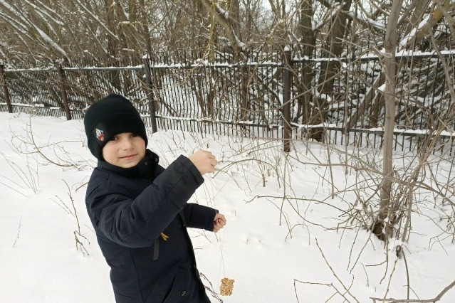 Холодная зима становится серьёзным испытанием для наших крылатых соседей. Первоклассники изучили проблемы зимовки птиц, узнали особенности их питания, самостоятельно изготовили вкусные кормушки, которые затем развесили на деревьях возле школы.