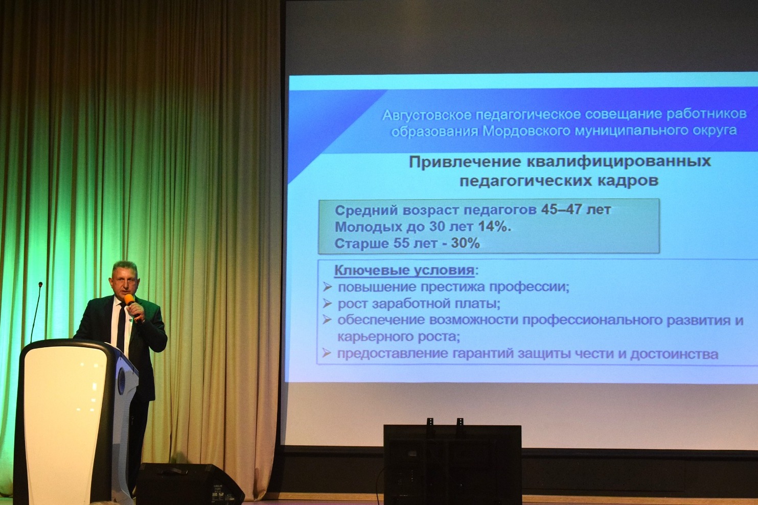 В конференции участвовали глава Мордовского округа Сергей Манн, начальник отдела образования администрации округа Татьяна Плужникова, руководители школ и учреждений дополнительного образования, педагоги и ветераны сферы.
