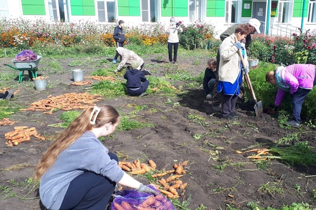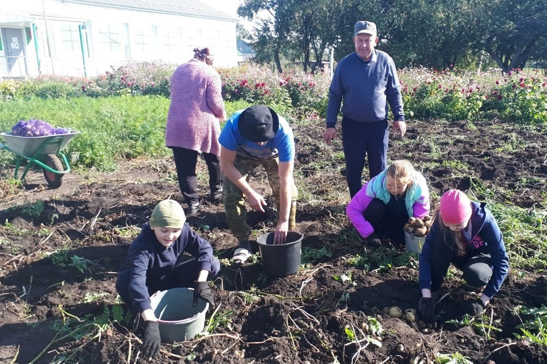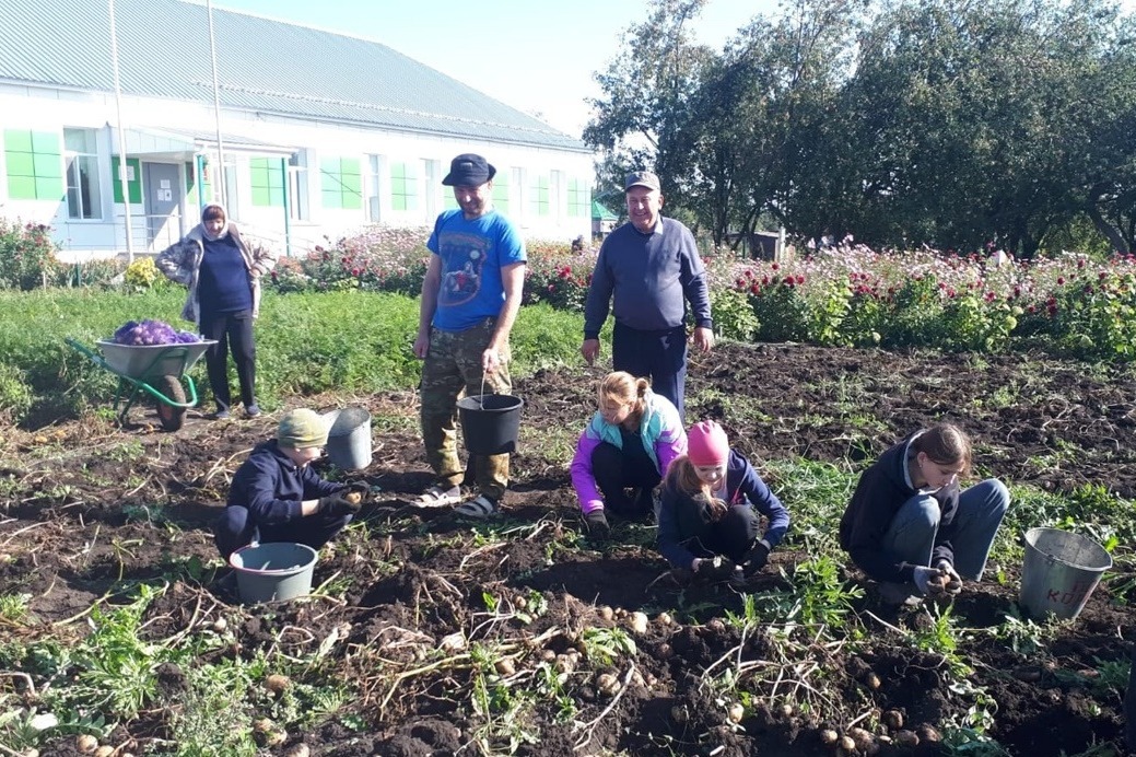 Благодаря общим усилиям, урожай в этом году удалось получить хороший. После завершения уроков в один из дней организовали субботник по уборке урожая. На помощь детям и учителям пришёл бывший ученик школы, участник СВО Сергей Ганчев, который находится в краткосрочном отпуске. В каждый свой приезд он обязательно встречается со школьниками и педагогами, рассказывает о своей службе.
