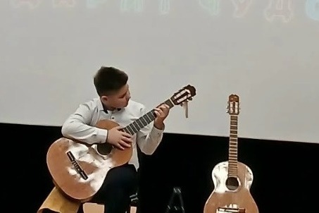 Кирилл Бутрин занимается по классу гитары второй год и победы в этих конкурсах – его первый вклад в копилку достижений.