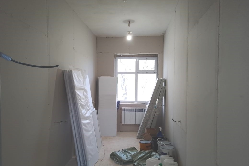 Ремонтные работы в терапевтическом отделении были запланированы на 2025 год, но недавно здесь уже приступили к ремонту второго поста. После реконструкции его помещения приобретут современный вид. Здесь уже почти на 70% обшили стены палат и коридора гипсокартоном. Также эти материалом облицуют потолок в палатах, а в коридорах сделают подвесные потолки типа «Армстронг». В каждой палате установят умывальники для пациентов.