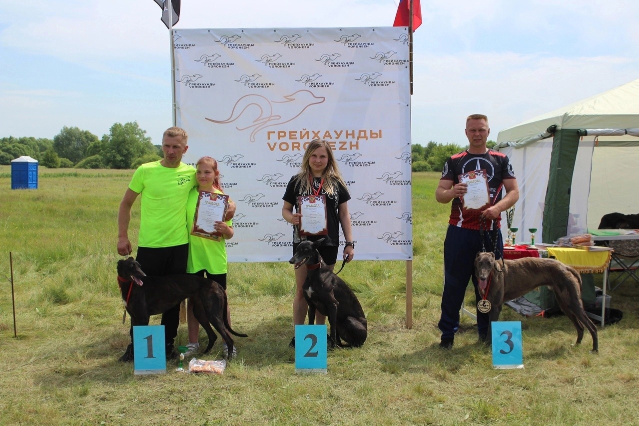 Определились 11 забегов, в каждом из них участвовало не более шести собак. В результате в разных забегах первые места заняли грейхаунды по кличке Дара, Прада, Престиж — хозяин Александр Косых, Агида — хозяин Андрей Шадрин.