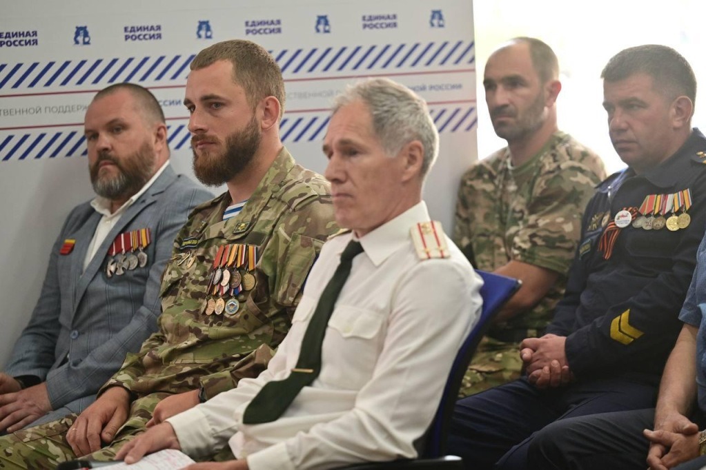 В штабе общественной поддержки партии Единая России Глава Тамбовской области Максим Егоров встретился с ветеранами боевых действий. По итогам общения, которое прошло в формате открытого диалога, состоялась церемония вручения областных наград — нагрудных знаков «За заслуги перед Тамбовской областью», «За содействие развитию Тамбовской области» и благодарственных писем Правительства региона.