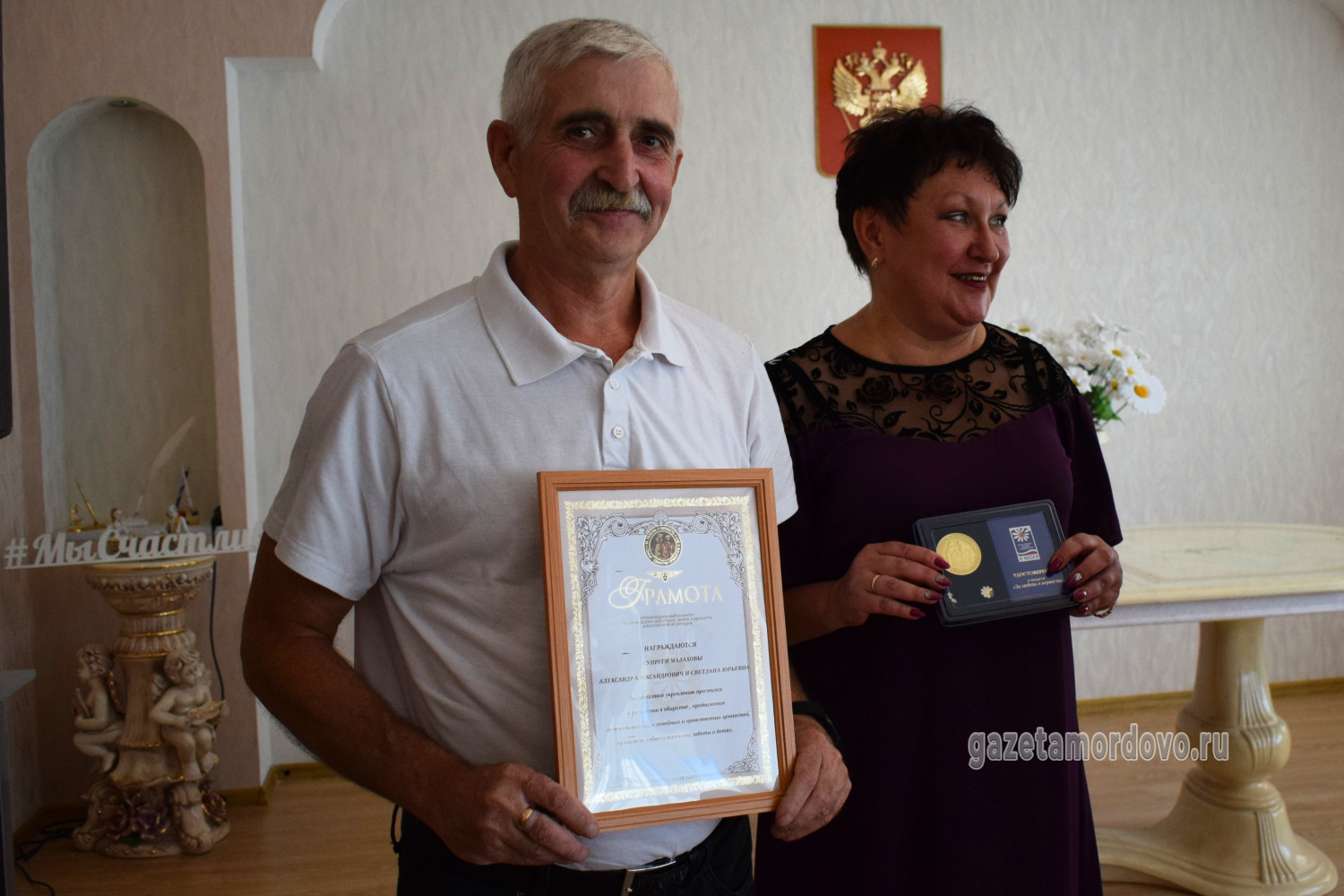 В зале торжеств мордовского ЗАГСа 12 июля состоялась церемония вручения общественной награды — медали «За любовь и верность» семьям-юбилярам Малаховых и Дорофеевых из посёлка Мордово.