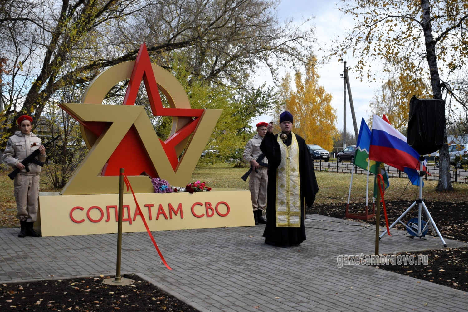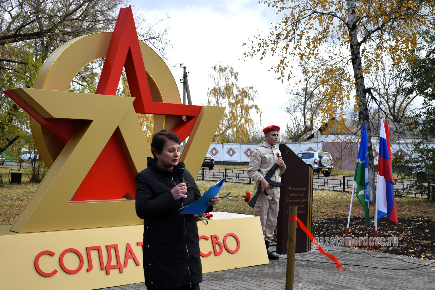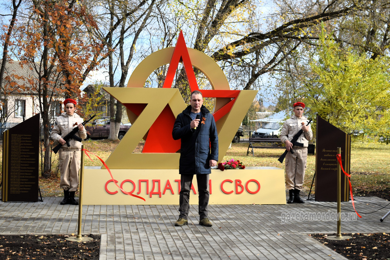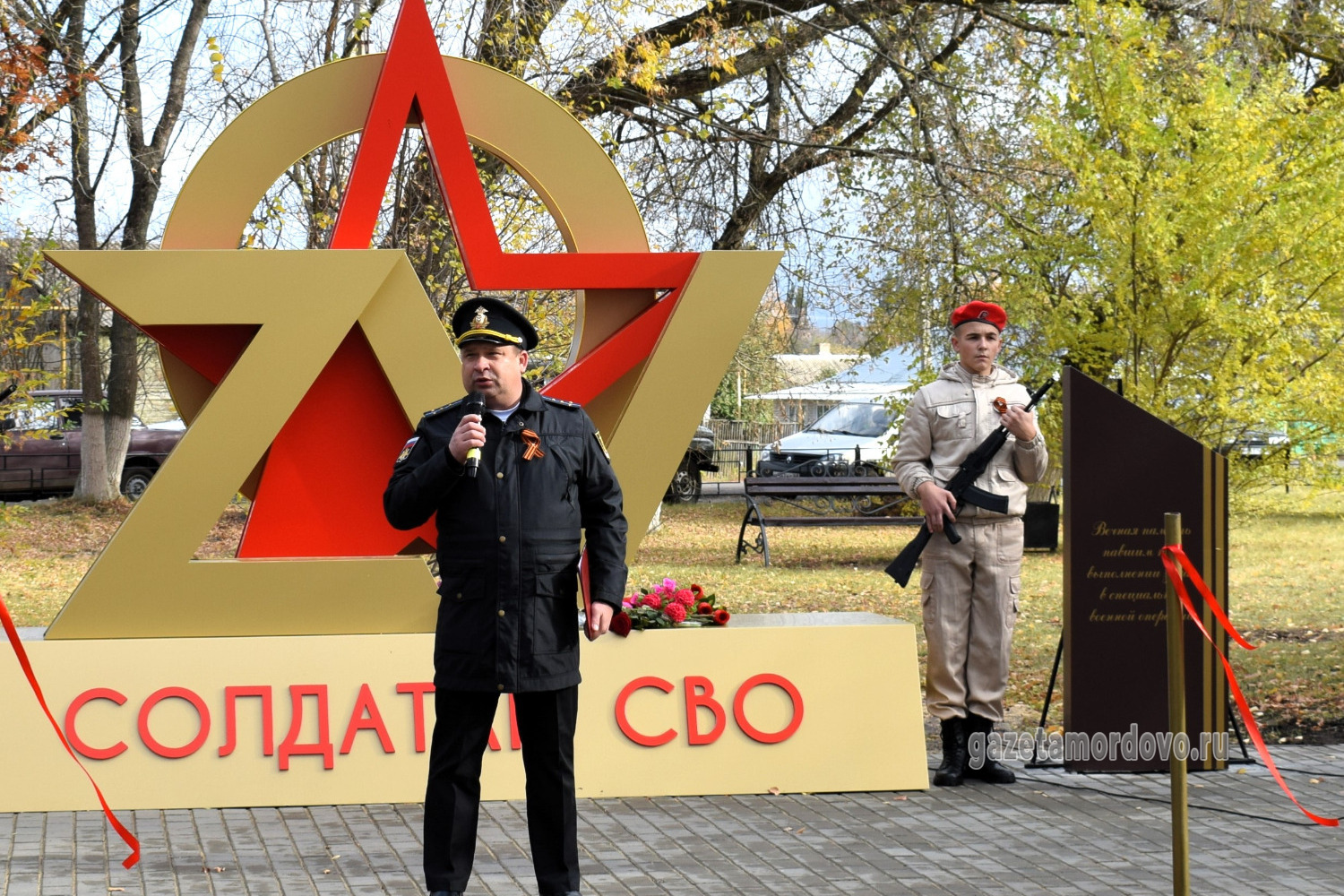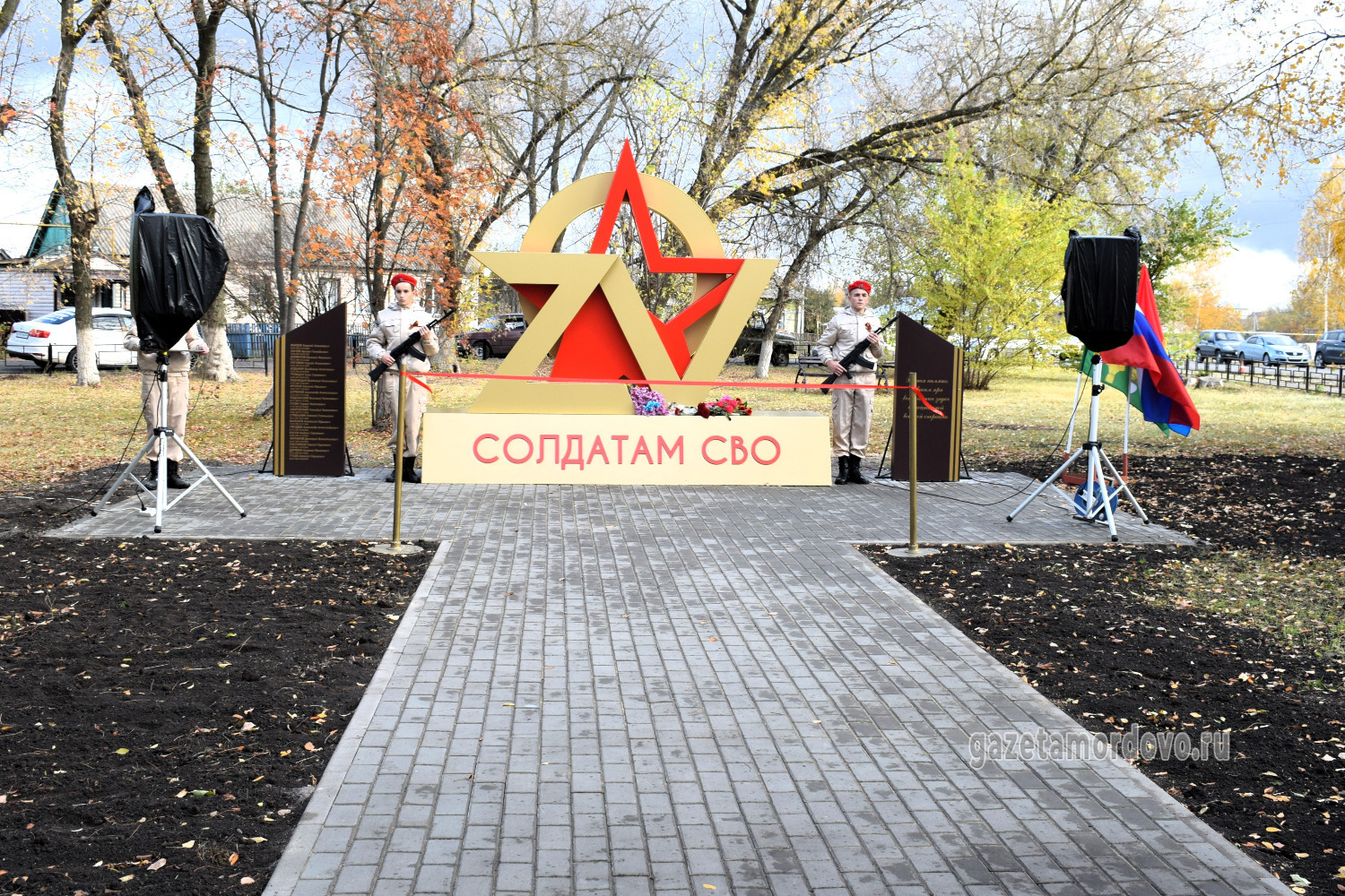 Памятное место организовали в зелёной зоне парка в центре посёлка Мордово. Центральное место занял арт-объект в виде наложенных друг на друга символов «Z», «V», «O» и красной звезды.