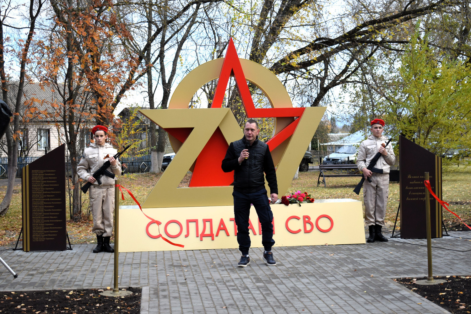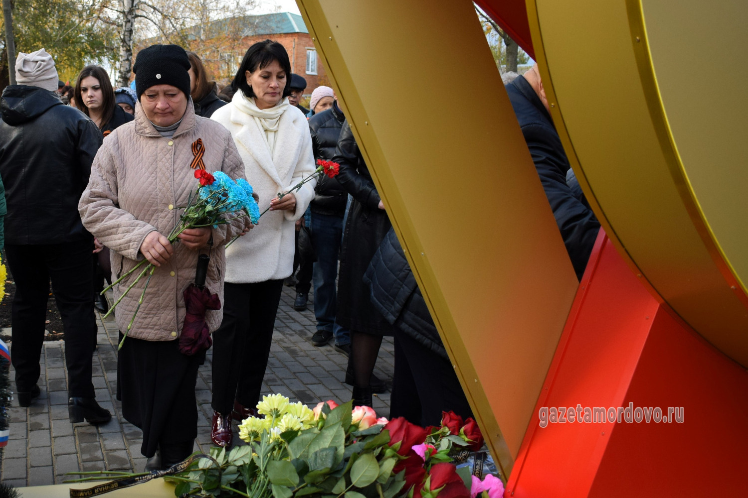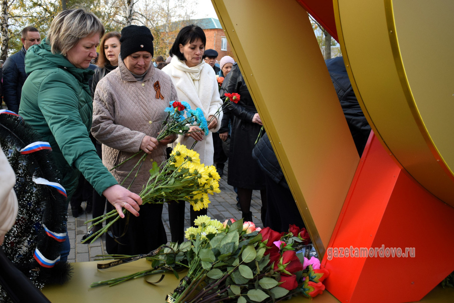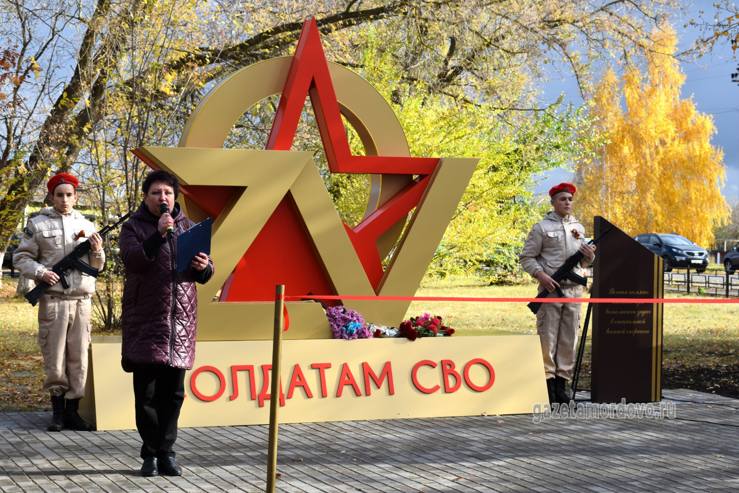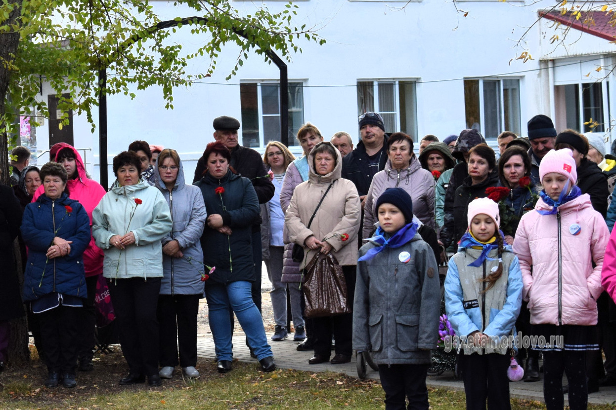 С правой стороны от арт-объекта разместили стелу с надписью: «Вечная память павшим при выполнении задач в специальной военной операции», с левой — стелу с именами 20 уроженцев Мордовского округа, которые погибли в ходе специальной военной операции.