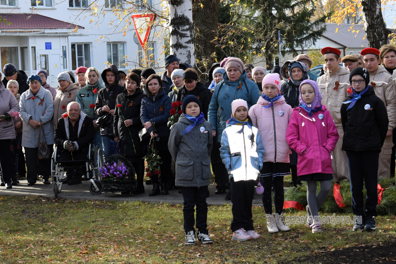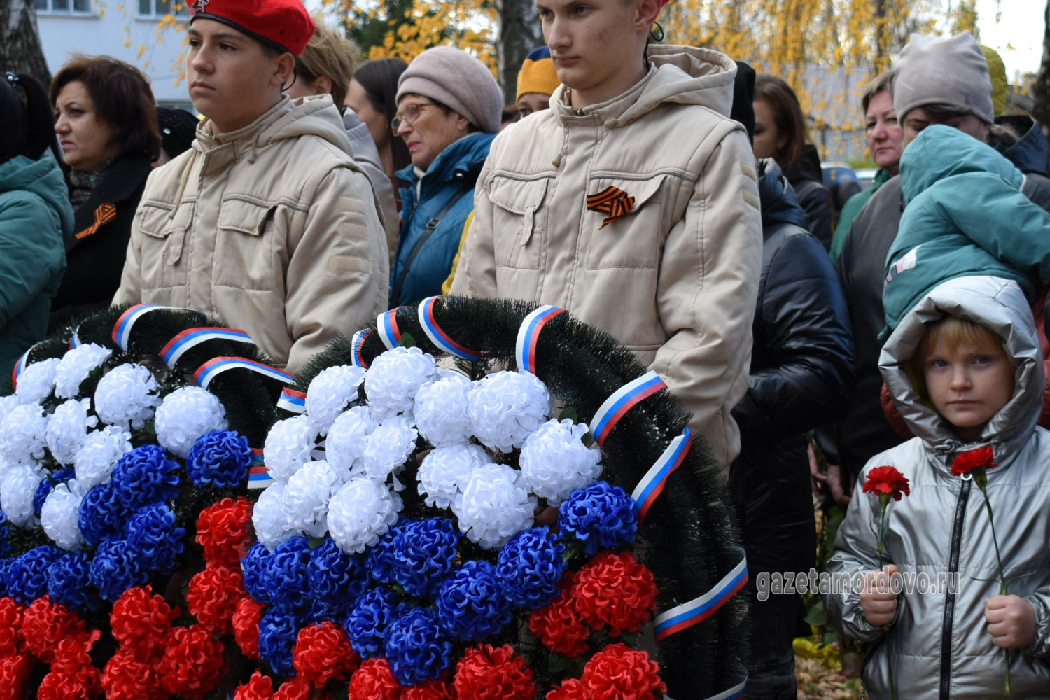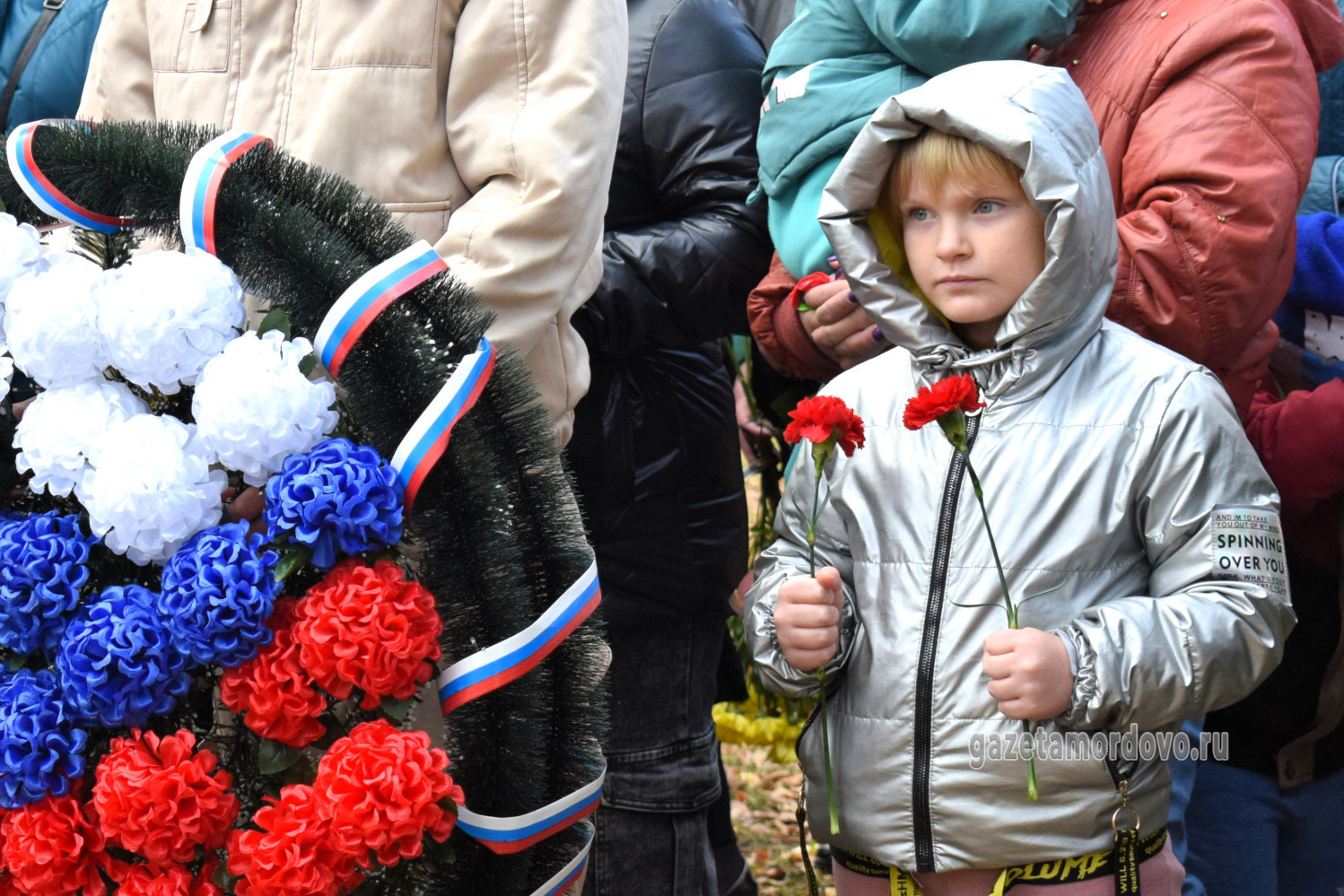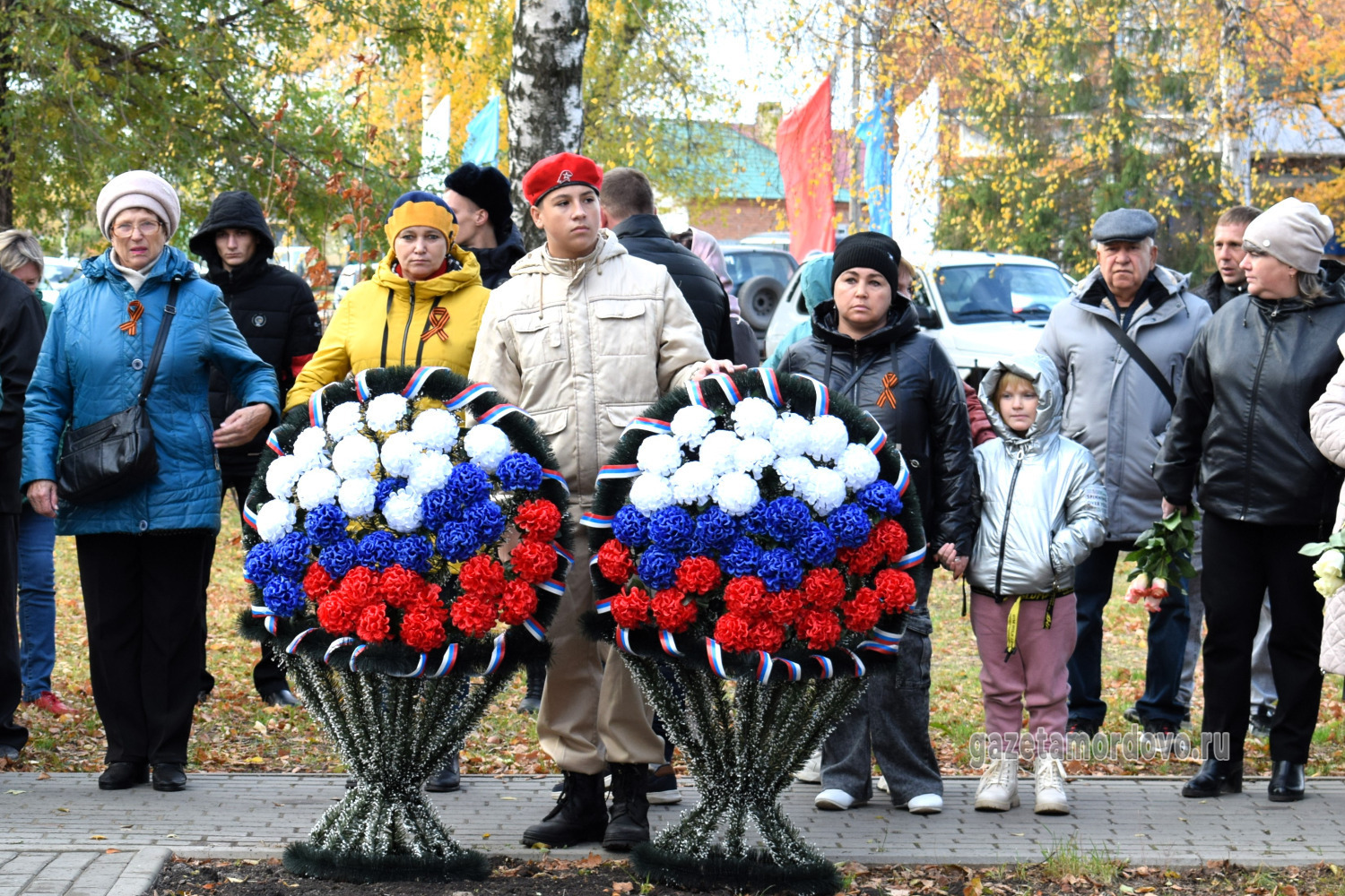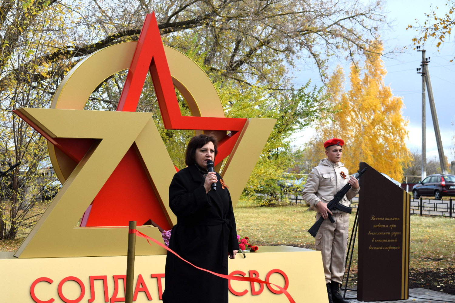 С правой стороны от арт-объекта разместили стелу с надписью: «Вечная память павшим при выполнении задач в специальной военной операции», с левой — стелу с именами 20 уроженцев Мордовского округа, которые погибли в ходе специальной военной операции.