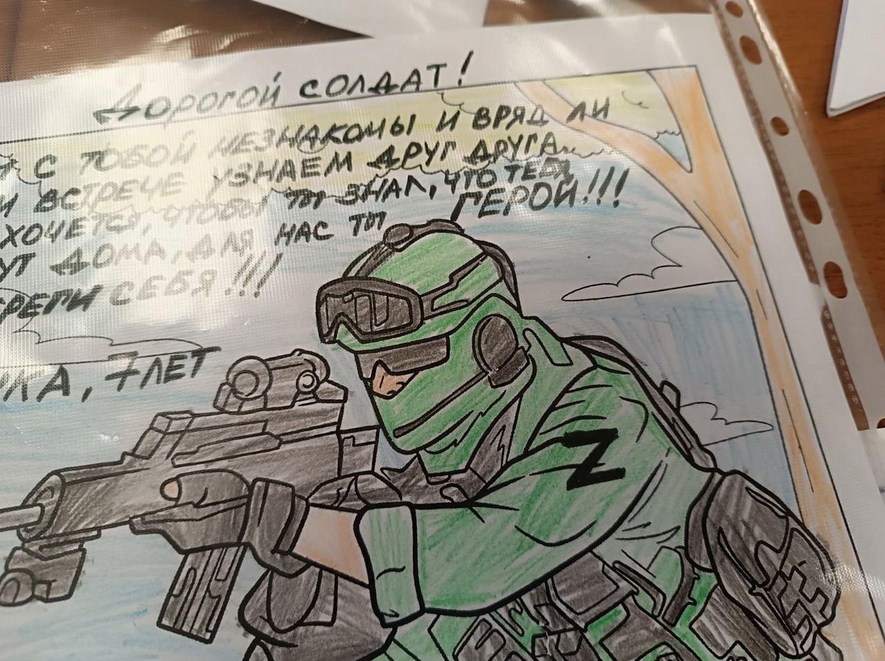 «Дорогой солдат! Мы с тобой не знакомы, и вряд ли при встрече узнаем друг друга. Но хочется, чтобы ты знал, что тебя ждут дома, для нас ты ГЕРОЙ!!! Береги себя!!!», — пишет семилетняя Ника.