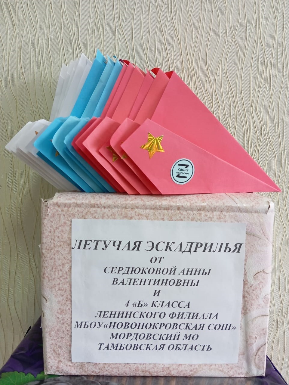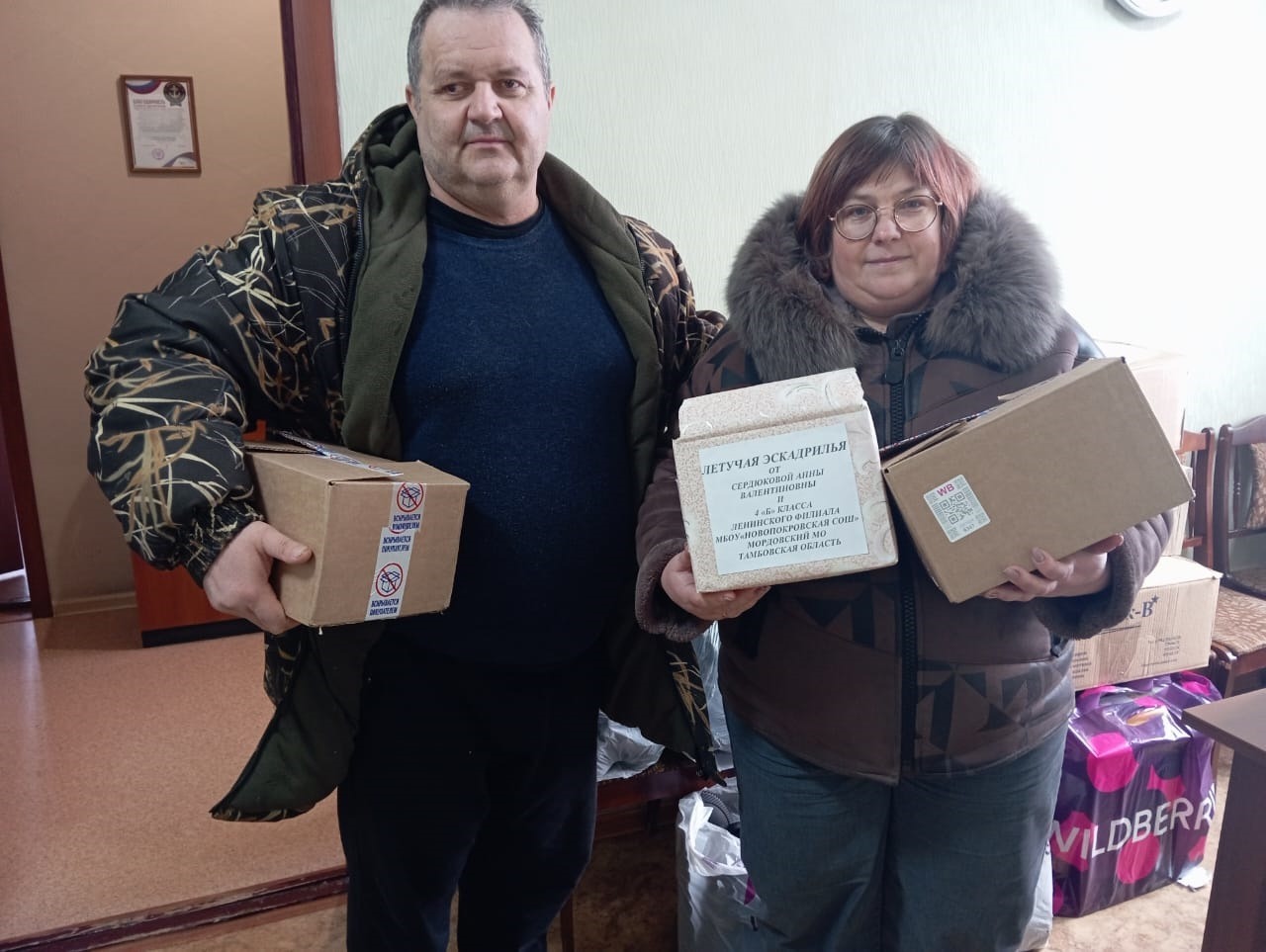 Часть гуманитарной помощи и письма 15 февраля передали бойцам 15-го гвардейского мотострелкового Шавлинского Краснознамённого полка, в котором служит наш земляк Дмитрий. Вторую часть гуманитарного груза, письма и рисунки отправят в Старобельский военный госпиталь.