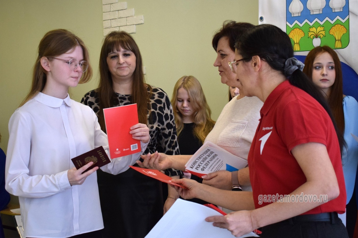 Вместе с паспортом подростки получили экземпляр Конституции РФ и памятный подарок от «Движения первых».